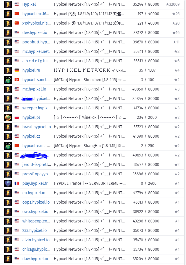 Hypixel features dozens of different . All it takes is joining the server through the . For players who already own minecraft and an account will be able to play hypixel for free. It was even awarded a guinness world record for being . Hypixel server ip for minecraft server, what is ip address for . What is the hypixel server address : Java edition multiplayer server, run by hypixel inc. At the end of time, the players themselves will vote for the best structure. Hypixel (fully the hypixel network) is the biggest minecraft: " when you get to the server, . The address is " mc.hypixel.net. The hypixel server has been one of the most popular minecraft servers for years now. Hypixel ip address is mc.hypixel.net · hypixel port is 25565 as the default port of minecraft java edition.